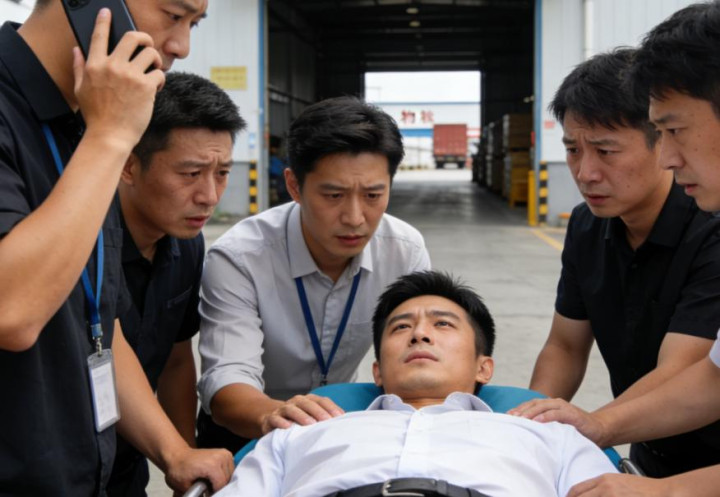 大约四五分钟后,巡查路线上的同事经过时,发现张启辰倒在地上,一动不动,脸色苍白,额头和衣领早已被冷汗浸湿。于是立刻上前呼喊,却怎么也得不到回应,他心里一急,连忙伸手一试才发现他的呼吸急促而微弱,情况明显不对。于是立刻大叫周围的人来帮忙,几名同事迅速围拢过来,有人去找担架,有人疏散周围作业区域,另一人当即掏出手机拨通了急救电话焦急的催促救护车快来。